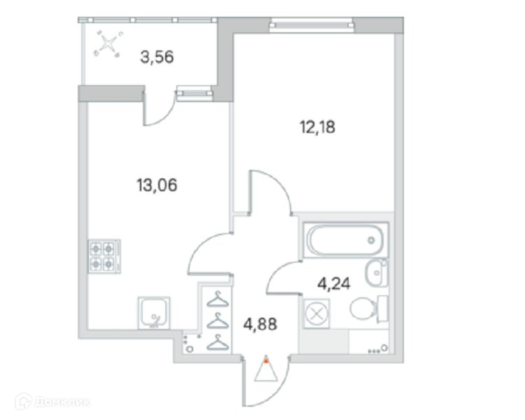 Жилая площадь 12.18 м2