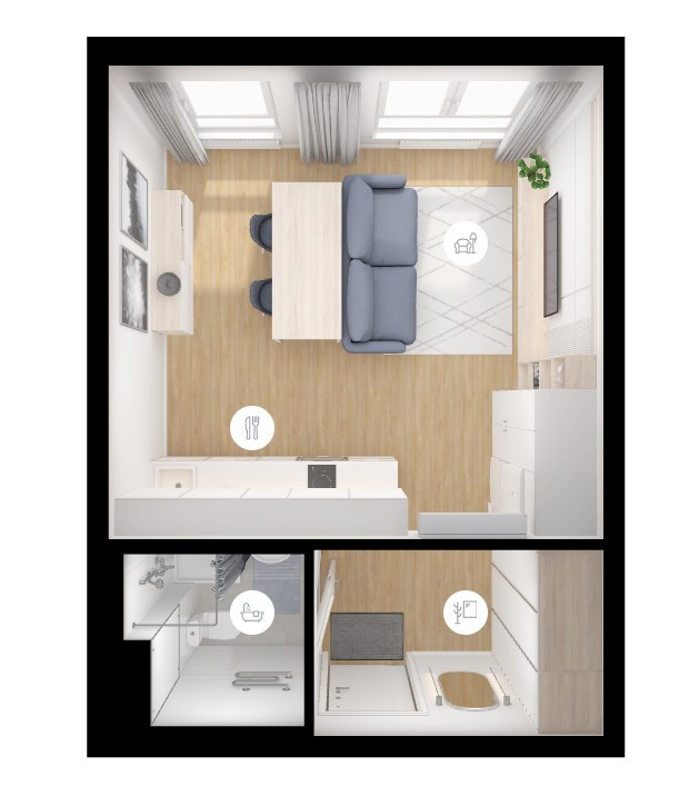 Общая площадь квартиры 27 м2
