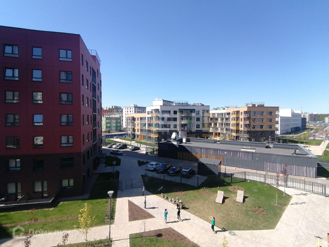 На территории комплекса обустроены детские и спортивные площадки, а также уютные зоны для отдыха. Благодаря ландшафтному дизайну и зеленым зонам, окружающим здание, создается атмосфера комфорта и уюта. Жильцам доступна общая терраса для отдыха и общения.