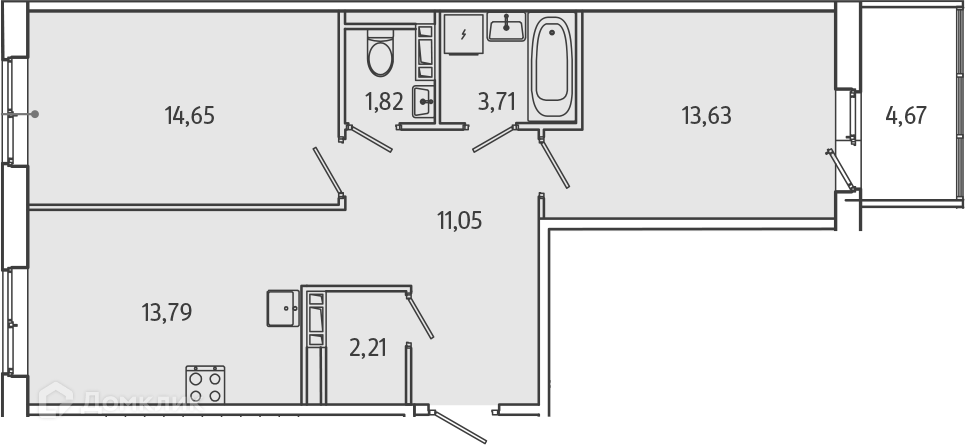 Площадь кухни 13.79 м2