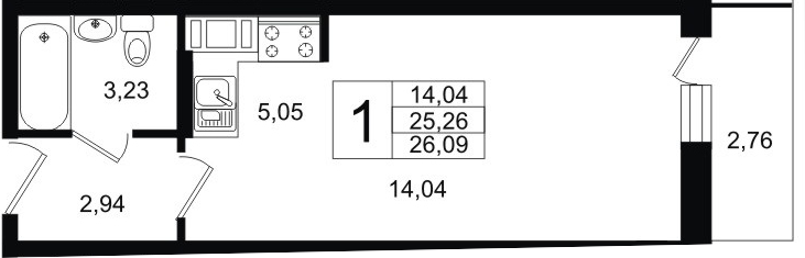 Общая площадь 26 м2