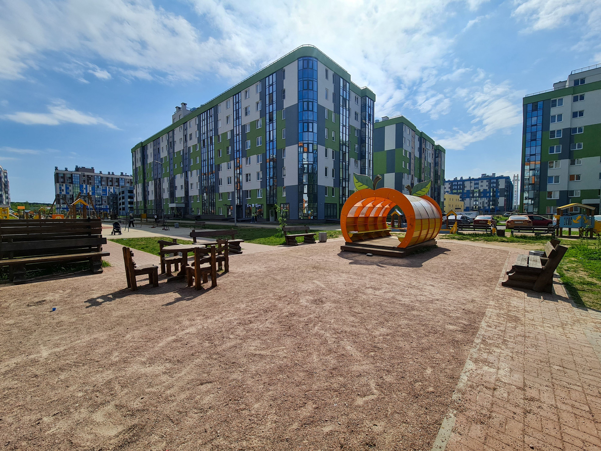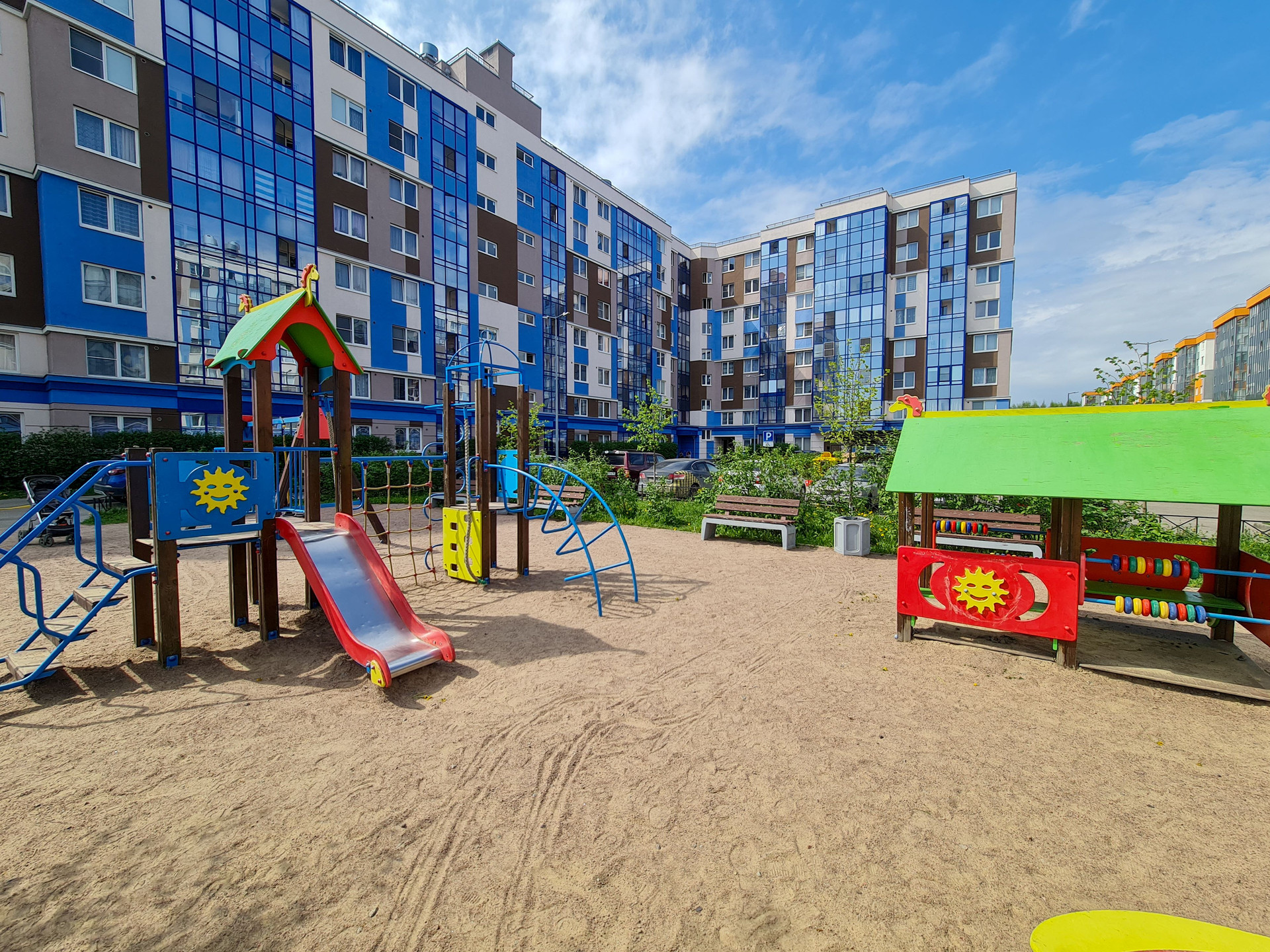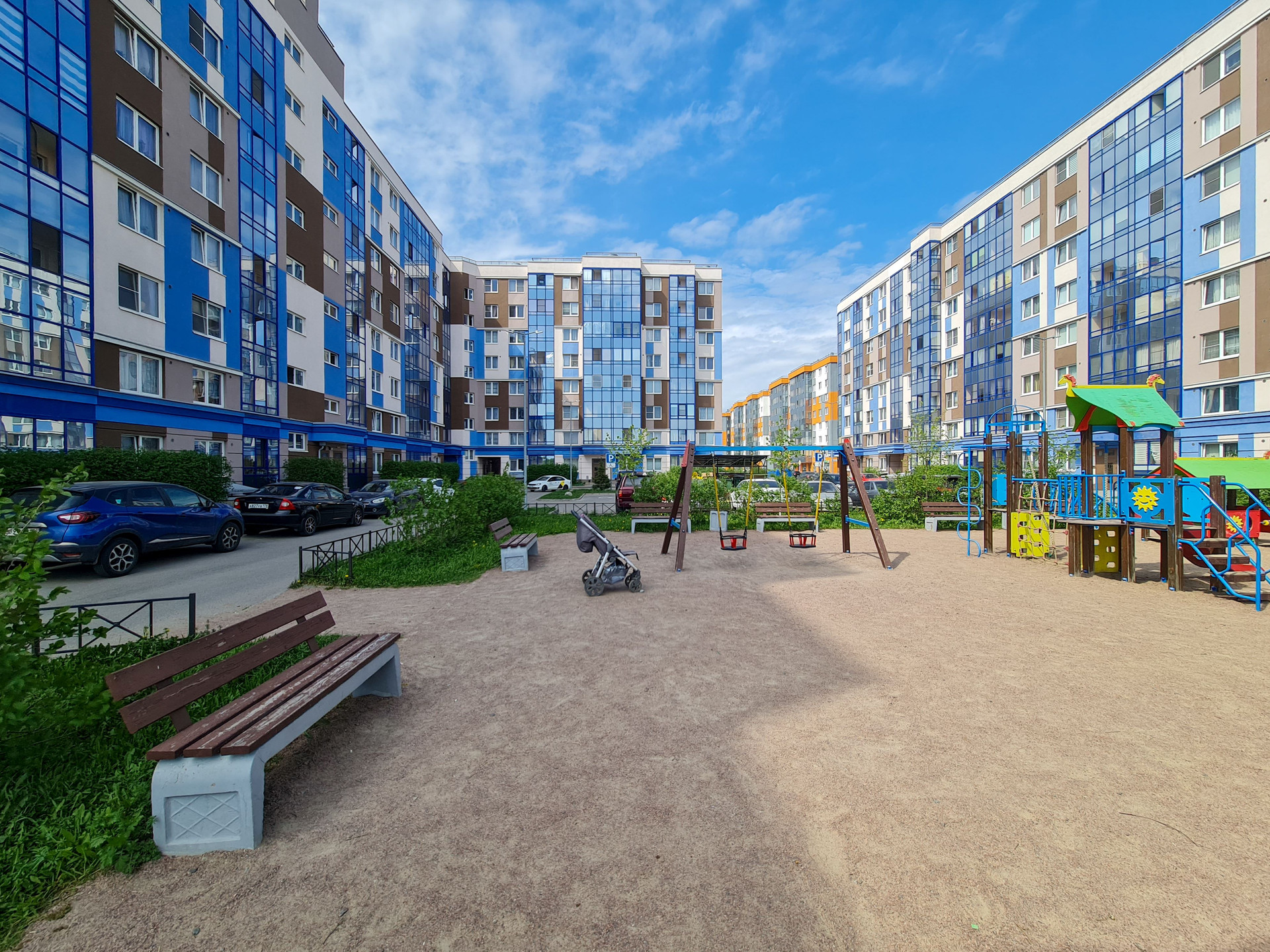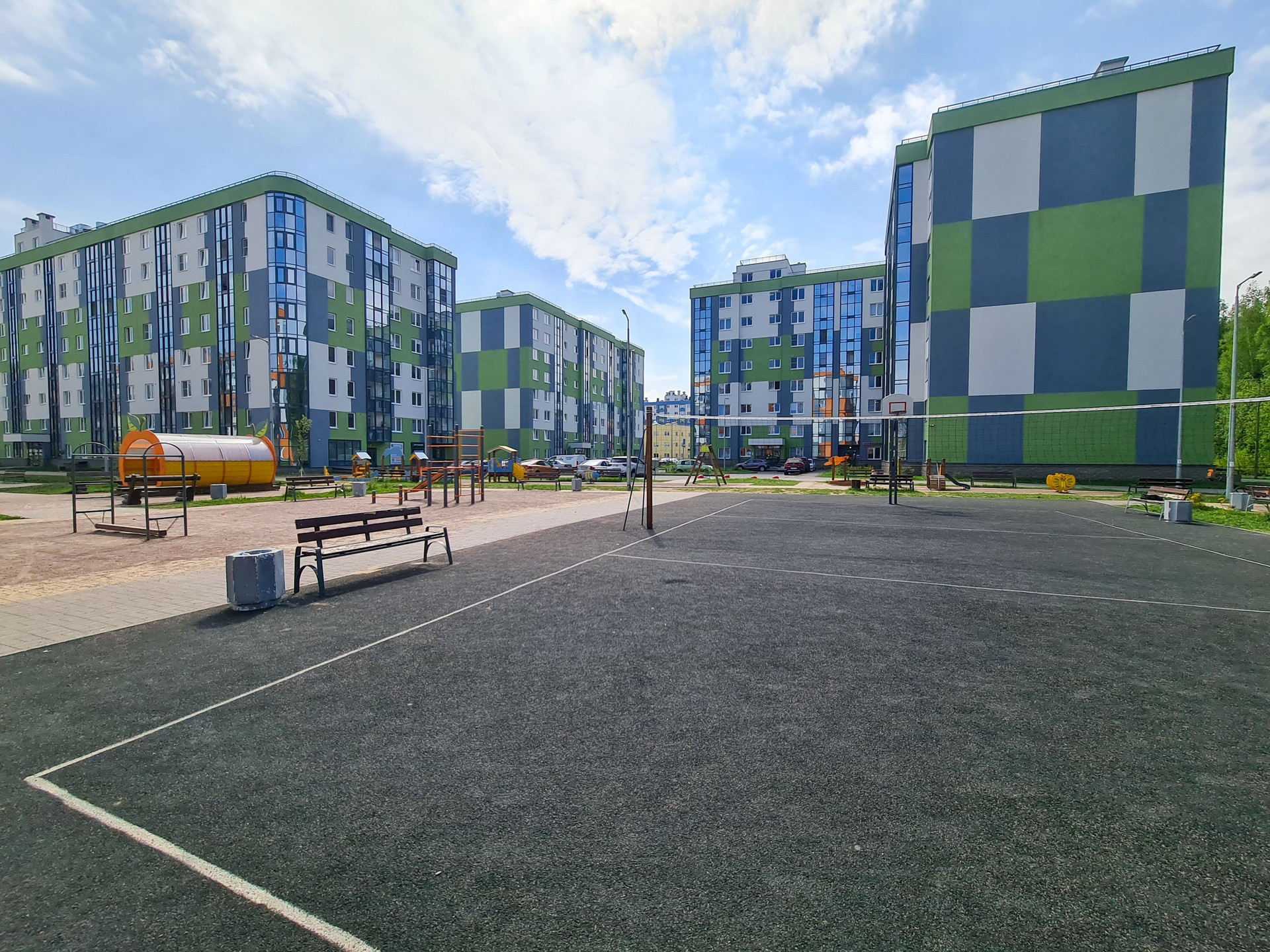 - уютные и благоустроенные дворы с зелеными насаждениями, спортивными площадками, детскими игровыми зонами и местами для отдыха;