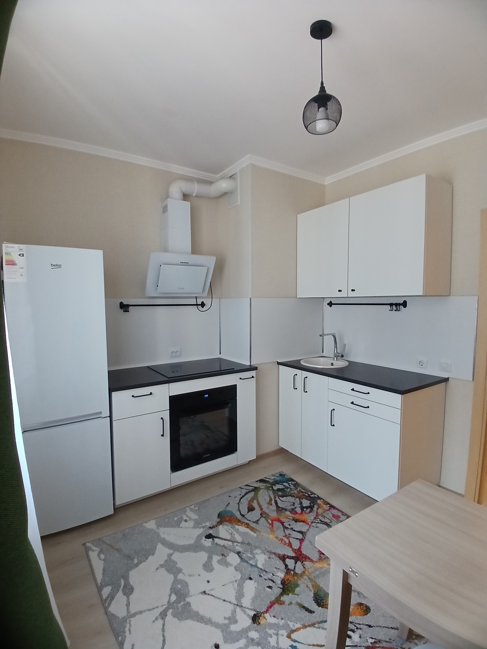 Мебель в коридоре и кухня со встроенной техникой остается новым владельцам.