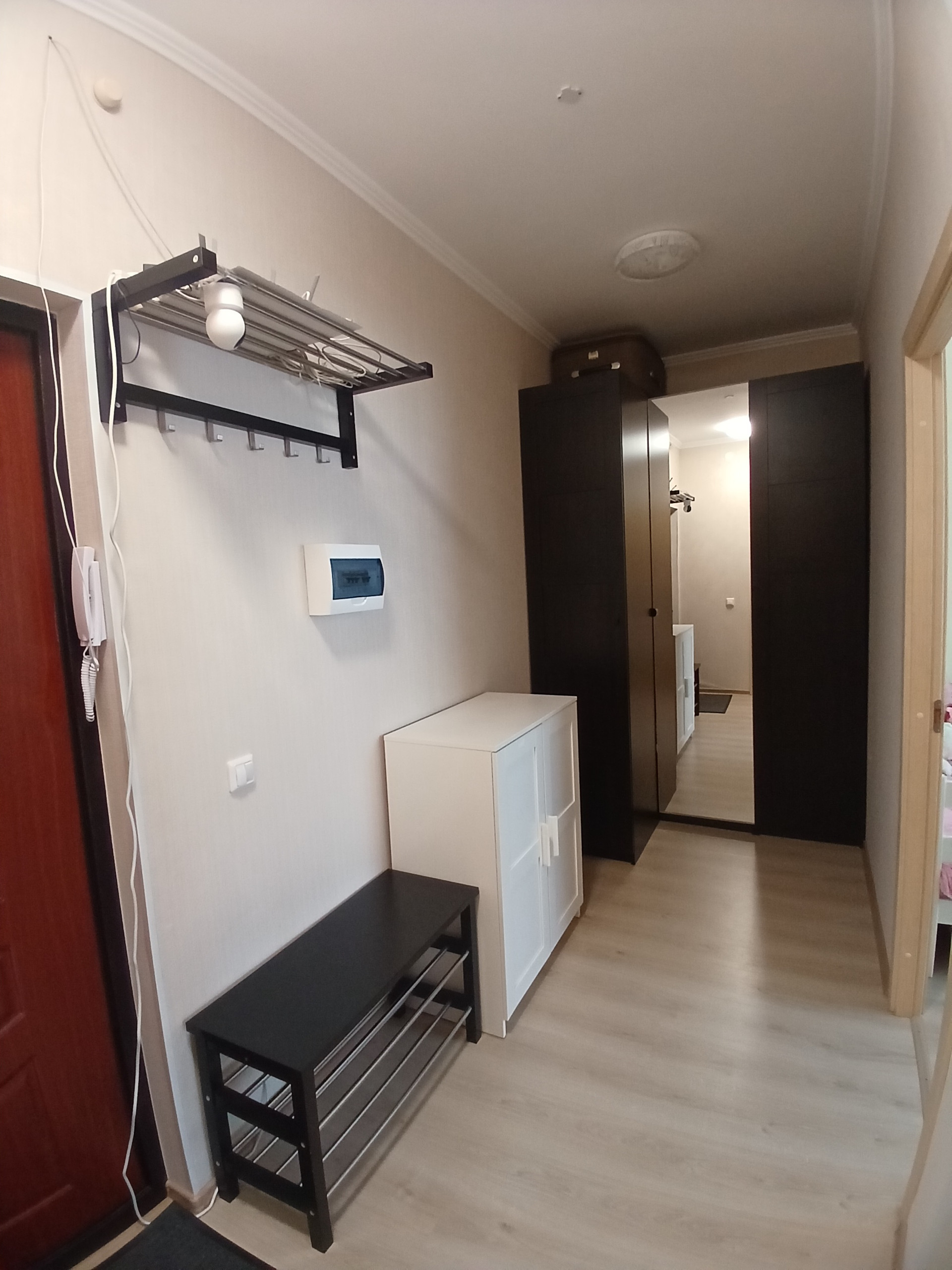 Планировка коридора позволяет реализовать вместительную гардеробную.