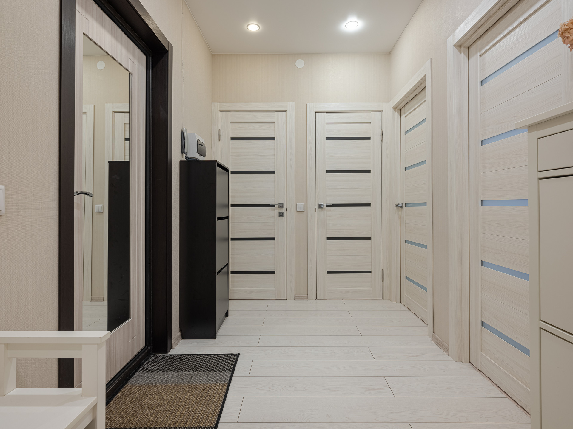 Квартира расположена на 3-м этаже современного монолитного 8-этажного дома с качественной отделкой входных групп.
