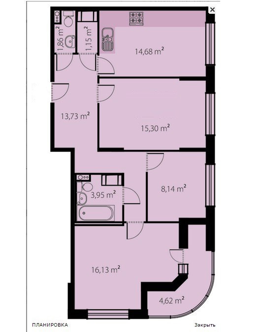 Общая площадь 73.8 м2