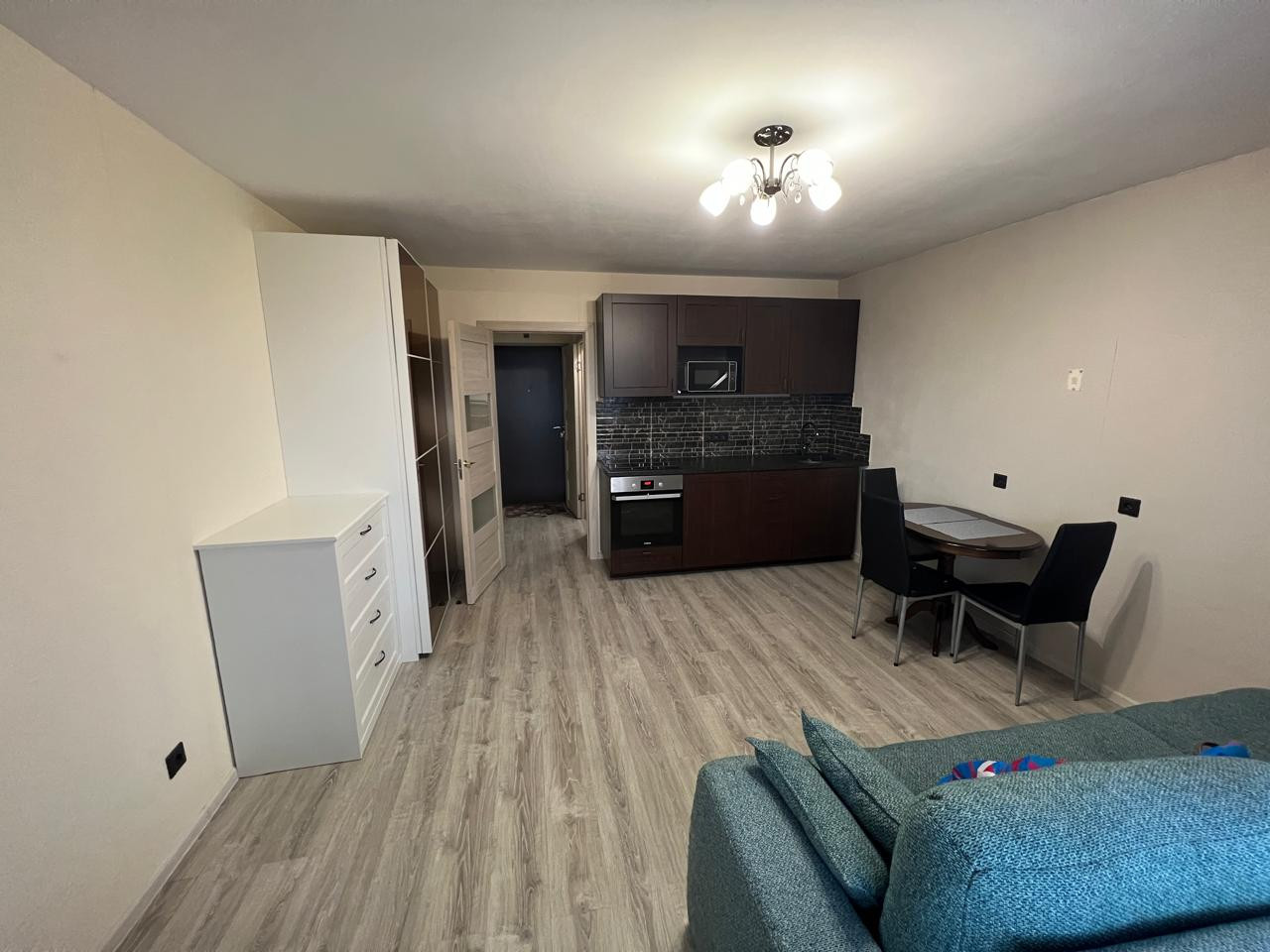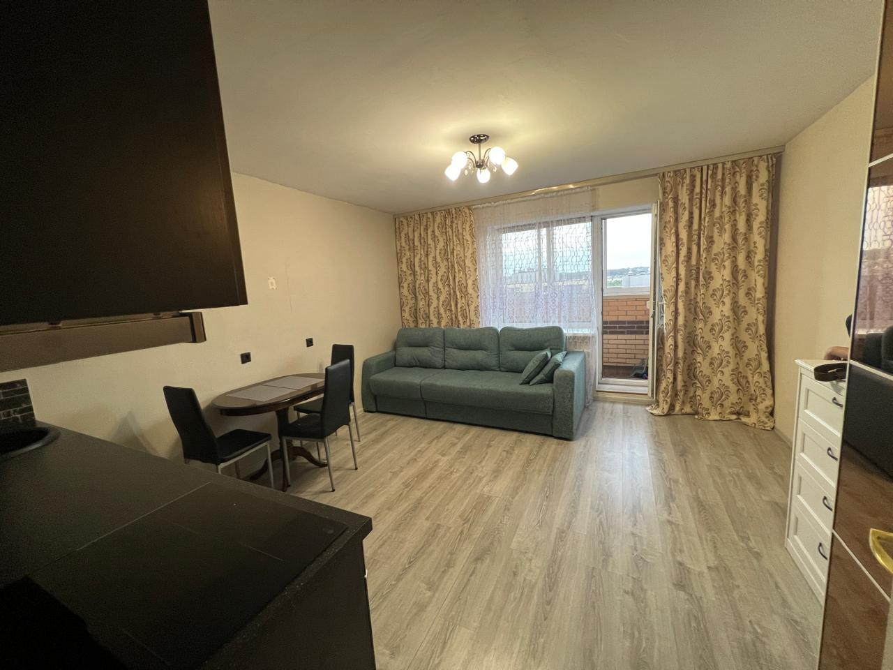 Продается уютная студия 26 кв.м( без учета лоджии) на одиннадцатом этаже, в кирпично -монолитном доме на Голландской улице, д.8, в ЖК ЦДС Новое Янино. Дом расположен в глубине квартала, широкое окно выходит на улицу, лоджия застеклена, 4 кв.м. Квартира солнечная, жилая площадь комнаты 19,2 кв.м; в прихожей, в нише расположен вместительный шкаф-купе. В квартире никто не жил, чисто. Сделан полный ремонт. Можно заехать сразу. Остается кухонная стенка, индукционная плита, вытяжка, водонагреватель, вся мебель в квартире: шкафы, диван, стол, комод. В доме хорошая звукоизоляция. Приличные соседи. До остановки общественного транспорта несколько минут пешком. До метро Ладожская, пр. Большевиков 20 минут транспортом.