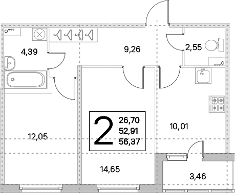 Количество комнат 2
