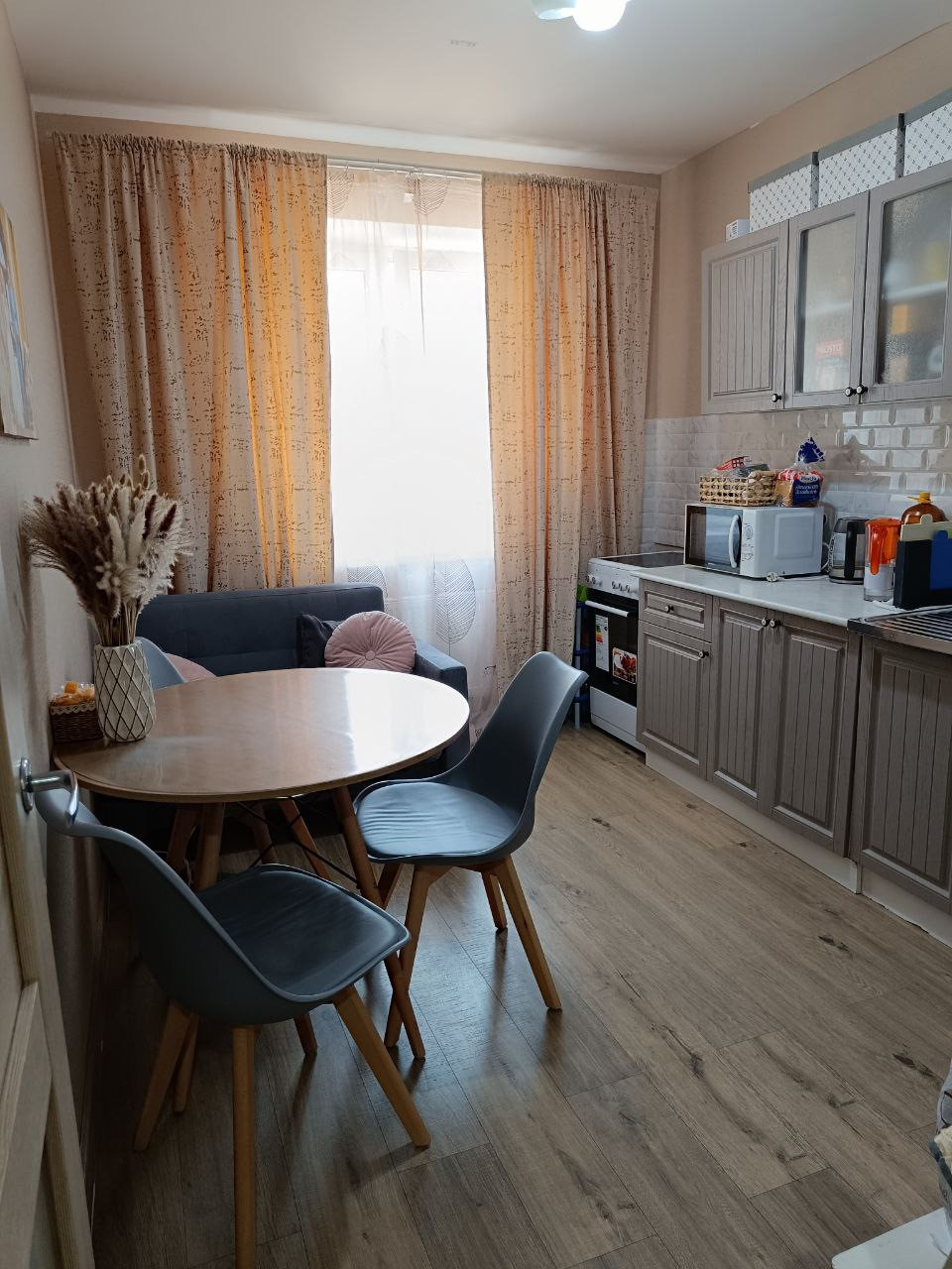 В квартире свежий качественный ремонт в кухне и комнате.