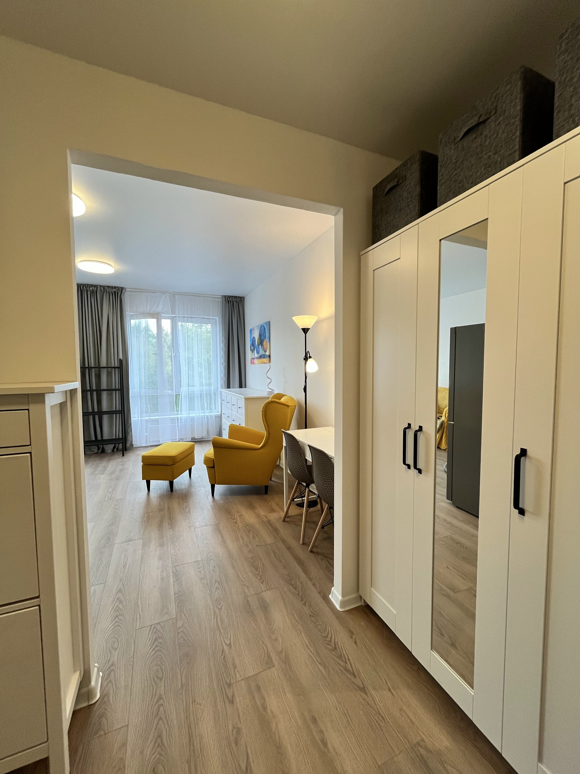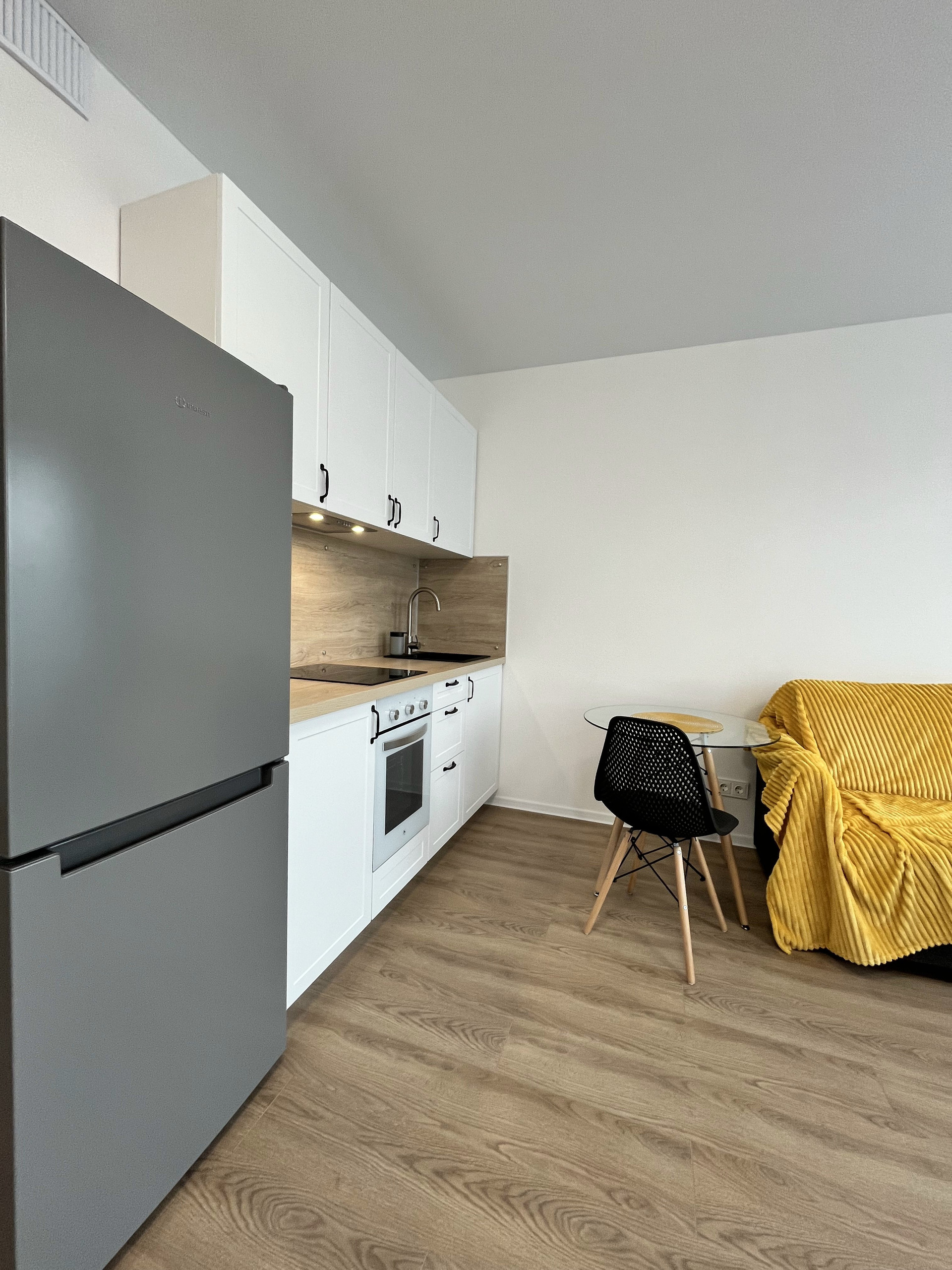 Дом и квартира: монолитный дом 2023 года постройки, один подъезд в доме. На первых этажах комплекса будут расположены коммерческие помещения. Парадная сквозная - можно выйти из дома во двор или на улицу. Двор закрытый, "без машин". Шикарное озеленение всей территории комплекса. Детские и спортивные площадки во дворе дома. Лесопарк (см. фото). Парковка во дворе дома и отдельно стоящий рядом паркинг (аренда/продажа машиномест). Два скоростных лифта. Кладовые на -1 этаже. На этаже в секции восемь квартир. Квартира общей площадью 26,9 м2, без балкона. Есть вся необходимая для проживания мебель и бытовая техника, всё новое, техника на гарантии. Санузел совмещенный, установлена душевая кабина. Пол - ламинат в комнатах и на кухне, кафель в ванной комнате. Потолок натяжной. Ремонт в скандинавском стиле. Квартира с хорошей теплоизоляцией, принимали в холодное время года со специалистом по приёмке квартир . Окна выходят на улицу, солнце во второй половине дня. Коммунальные платежи 1 800 -2 000 рублей в месяц без учета сезона и расхода. На воду, электроэнергию и подачу тепла установлены индивидуальные счетчики.
