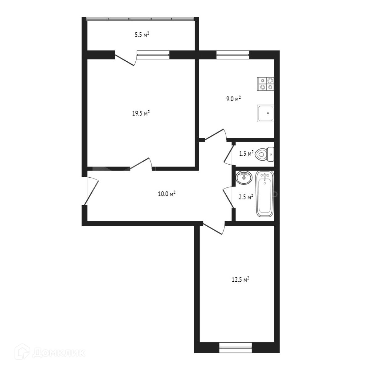 Общая площадь 54 м2