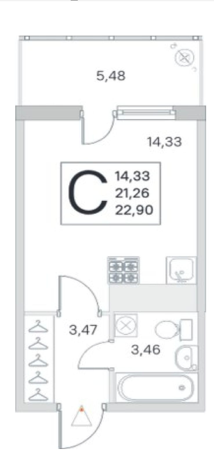 Общая площадь 21.3 м2