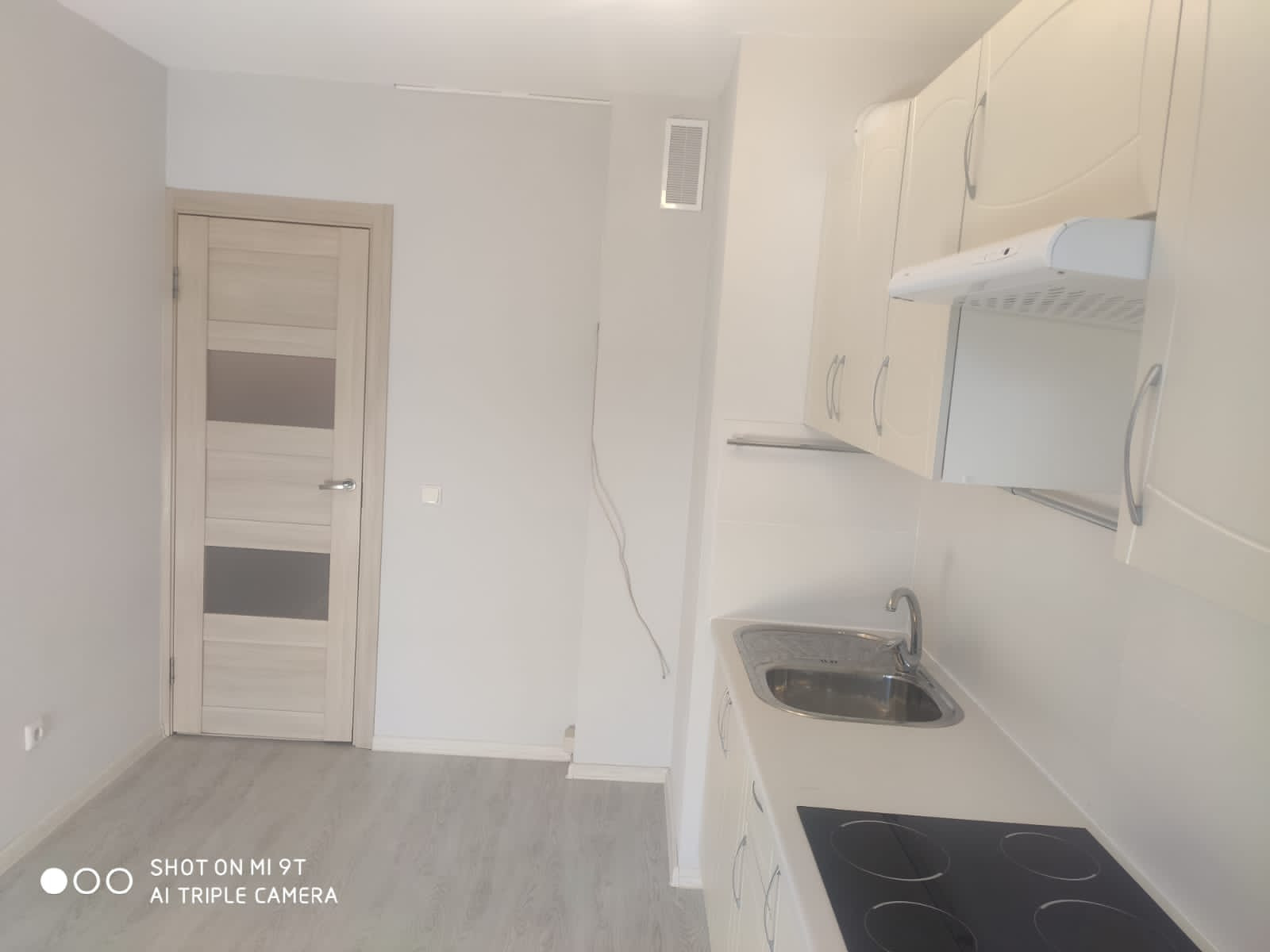 Кухня оборудована мебелью и техникой (варочная панель), из кухни выход на просторный балкон с остеклением.
