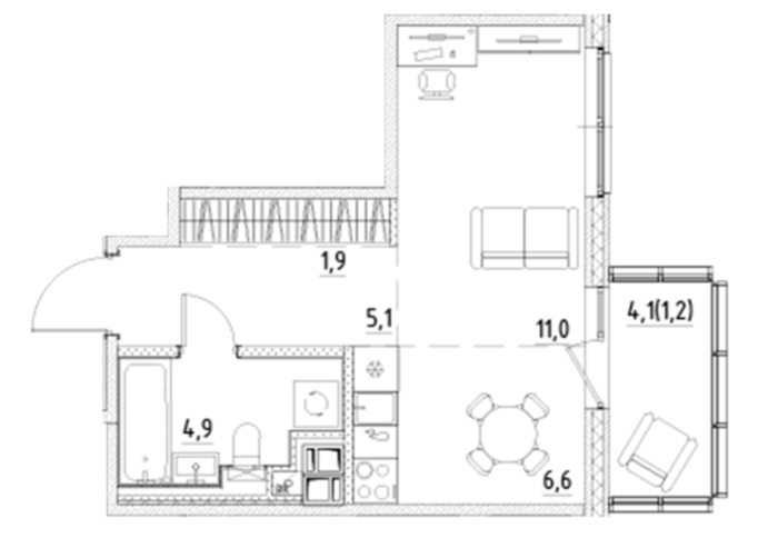 Общая площадь 30.7 м2