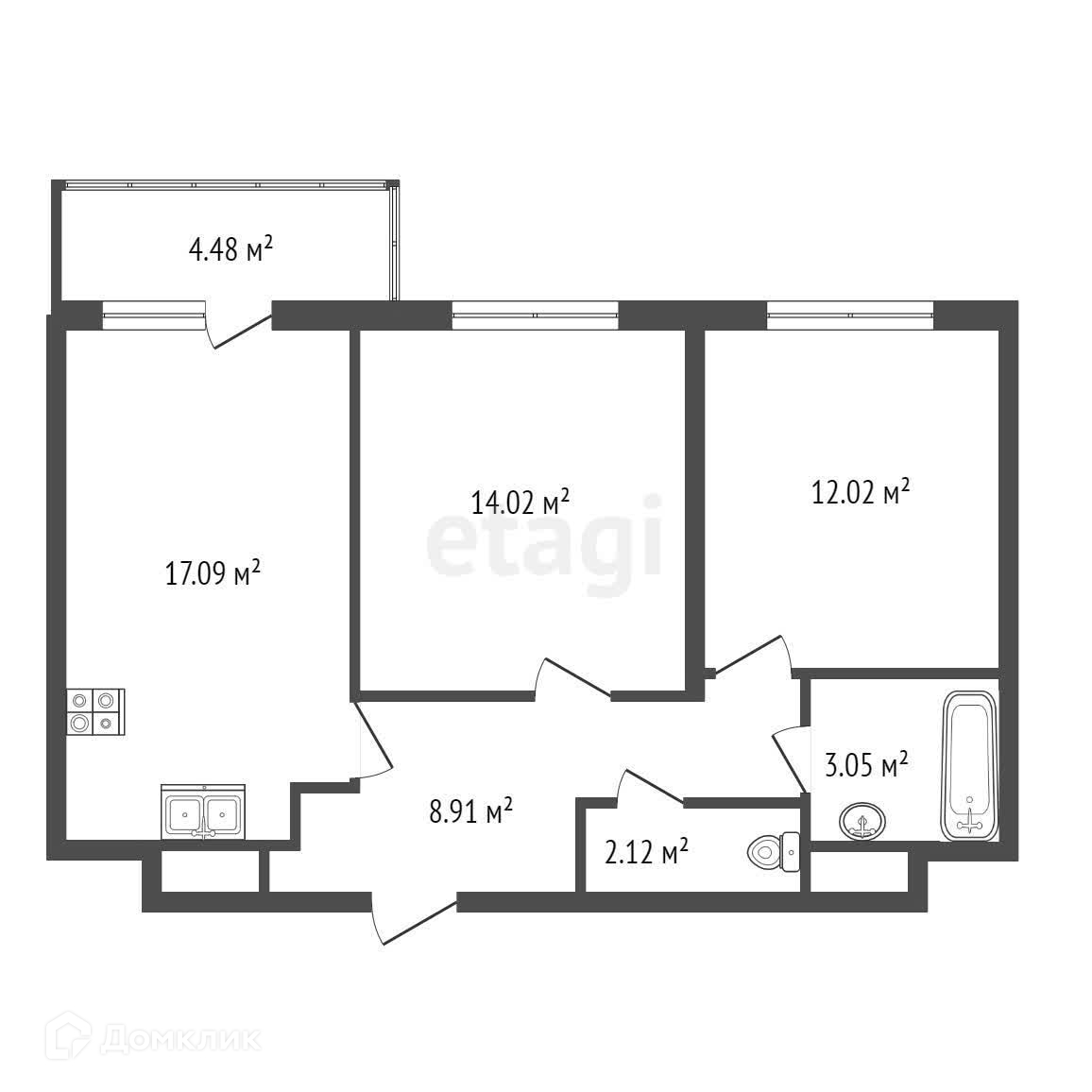 Общая площадь 61.69 м2