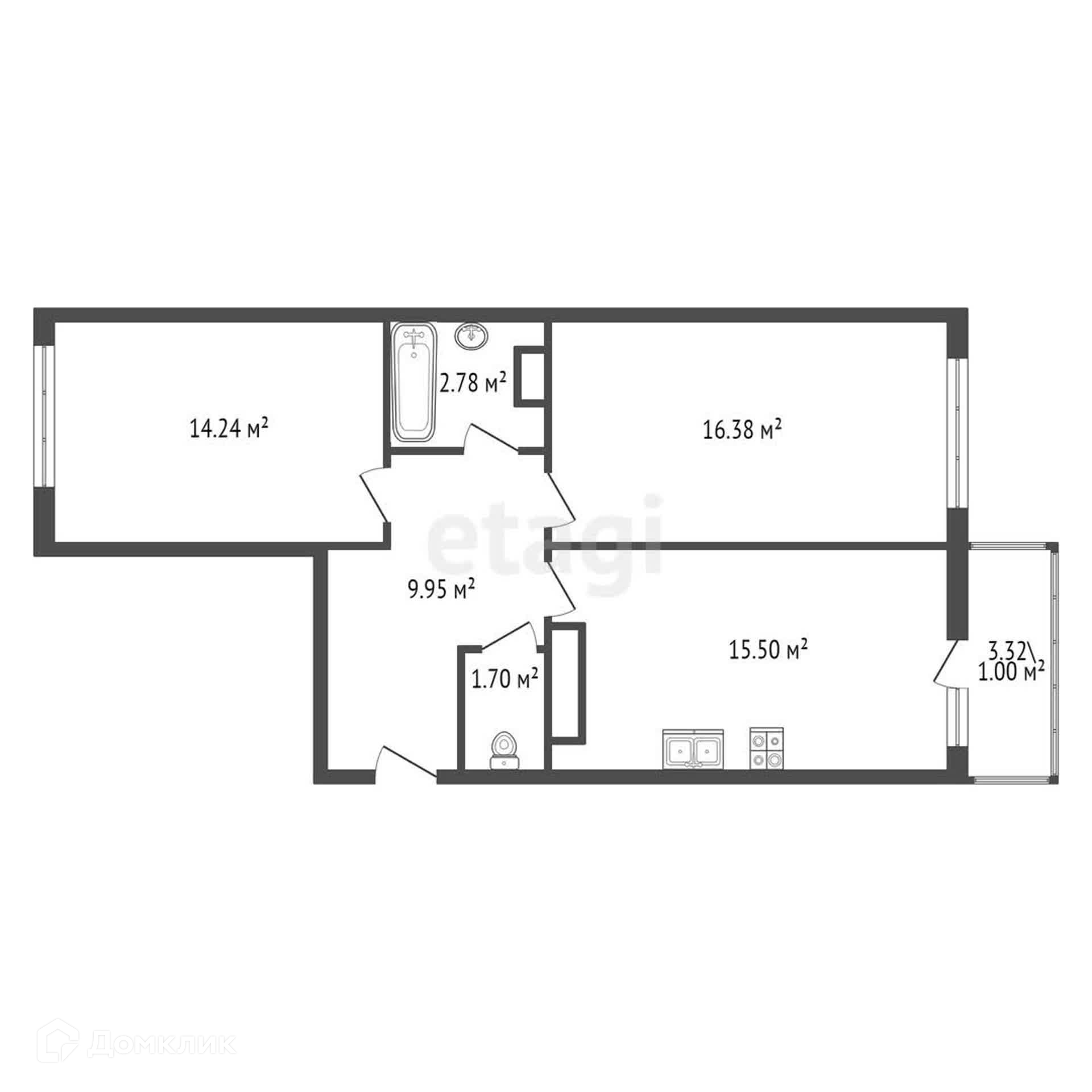 Общая площадь 59.8 м2