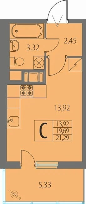 Общая площадь 19.3 м2