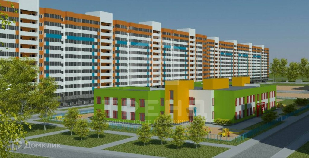 Благоустроенный двор с зелеными зонами, детскими и спортивными площадками