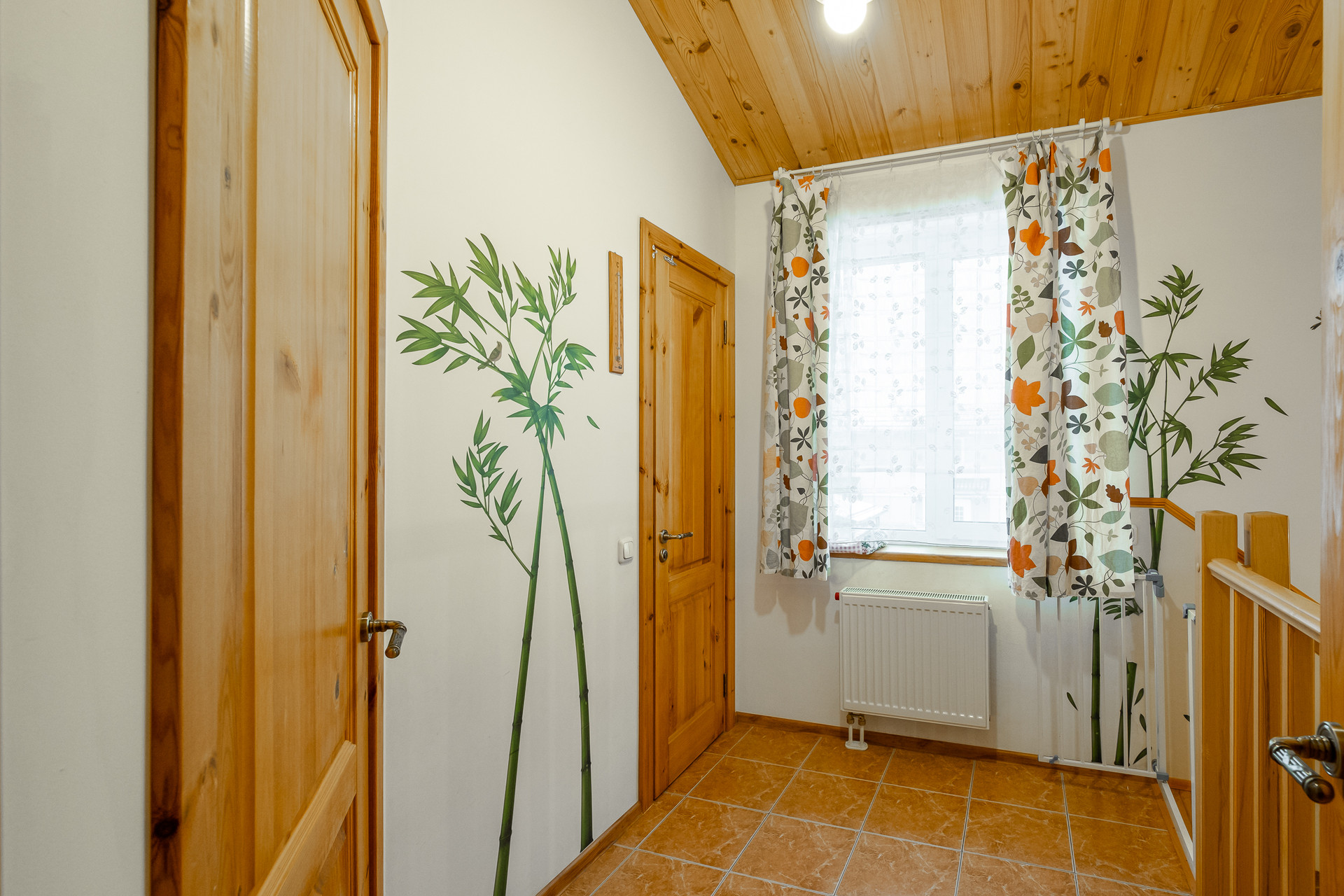 На первом этаже таунхауса: КУХНЯ - ГОСТИНАЯ (общее пространство для семейного общения) с небольшой крытой террасой и выходом в сад, ПРОСТОРНЫЙ САНУЗЕЛ С ОКНОМ, вместительная ГАРДЕРОБНАЯ, чуланчик под лестницей и УЮТНАЯ ПРИХОЖАЯ. Пол первого этажа — керамогранит, система отопления — теплые полы. В кухонной зоне установлен газовый котел Vaillant. На втором этаже: спальня и детская ( можно использовать как две спальни) с ВЫСОКИМИ ПОТОЛКАМИ, просторный БАЛКОН и еще один санузел. На втором этаже установлены батареи. На обоих этажах подоконники и межкомнатные двери из натурального дерева, что добавляет уюта дому и придает очарования загородной жизни. Ремонт выполнен хорошими практичными материалами, надежно, аккуратно и с любовью. УЧАСТОК 2 сотки, сухой, ровный, выполнен дренаж, со стороны центрального входа вымощены парковка и дорожки, уложен газон, построены ВЕРАНДА и ХОЗБЛОК, со стороны внутреннего двора — очаровательный САД, огорожен забором, высажены декоративные растения и цветы,