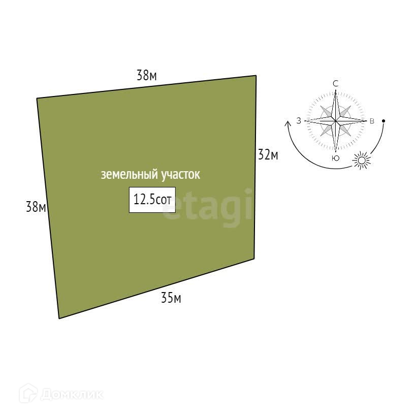 Площадь участка 12.5 сот.