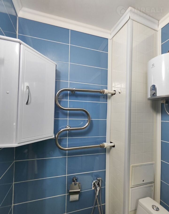 В ванной установлен бойлер, шкафчики для хранения нужной мелочи.