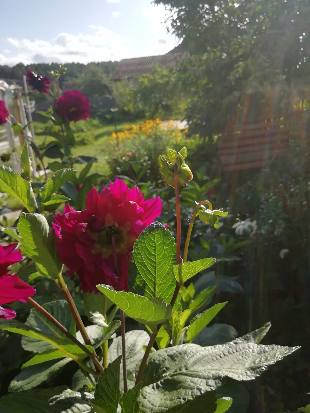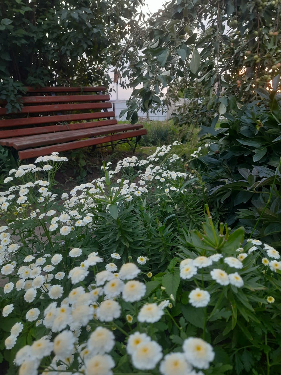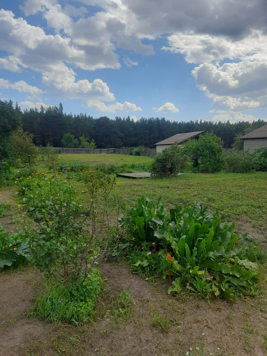 Земля удобрена и ухожена: растут плодовые деревья, а также многолетние цветы.