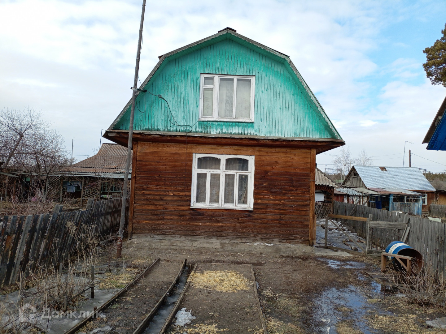 Деревянный забор, деревянные окна, двор не забетонирован. (Всё чистое, аккуратное)!