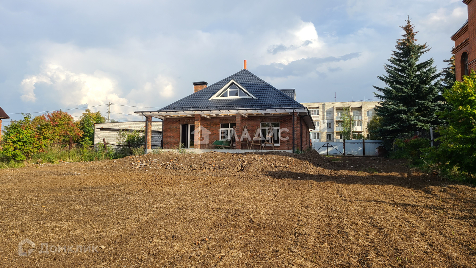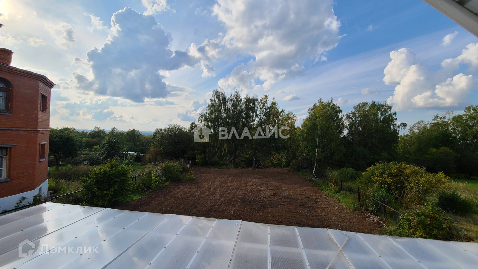 Дом на участке 15 соток, на данный момент вспахан и засеян травой.