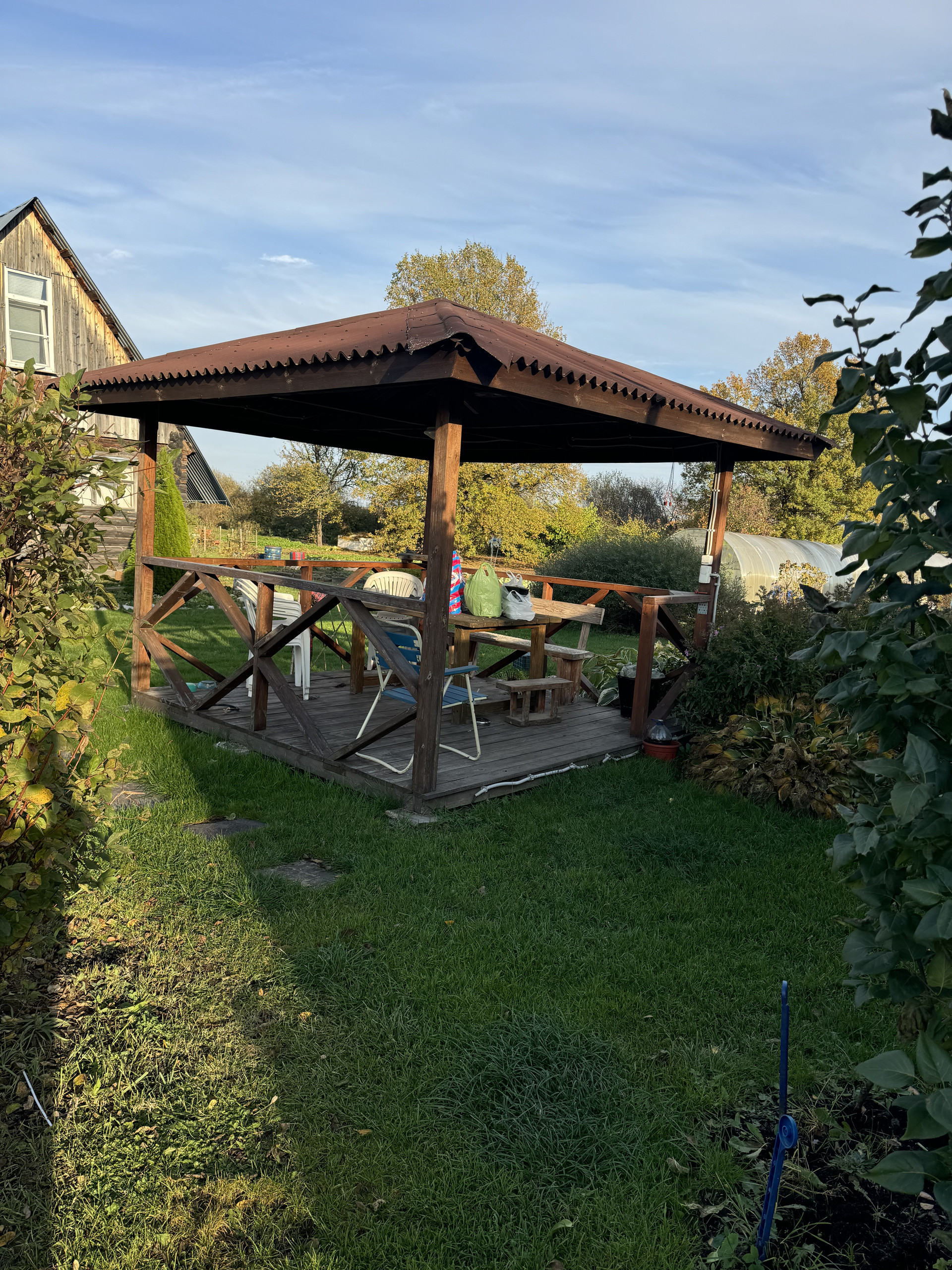 На участке отличная беседка с электричеством, теплица, грядки. Земля очень плодородная, растет ВСЕ. Много красивых растений, клумбы, туи, гортензии. Так же на участке шикарная двухэтажная баня с верандой. На первом этаже парилка, помывочная и большая комната отдыха, на втором большая комната. Так же на участке есть подиум под большой бассейн. Пишите, звоните, приезжайте смотреть.