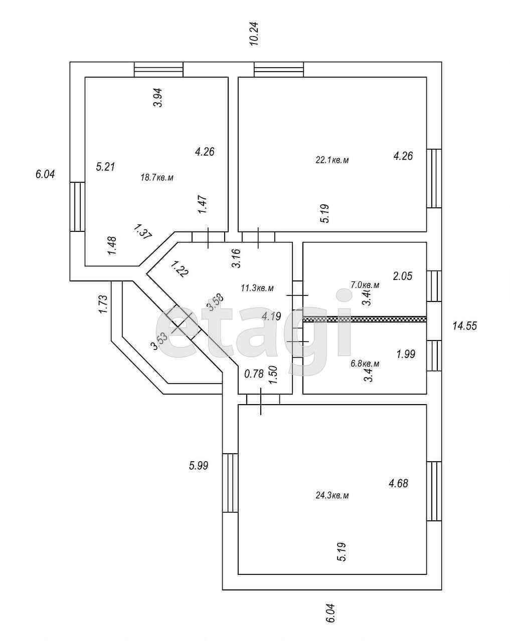 Планировка: кухня-гостиная 22,1 м.2.; комнаты: 24,3 и 18,7 м.2. Раздельный санузел.