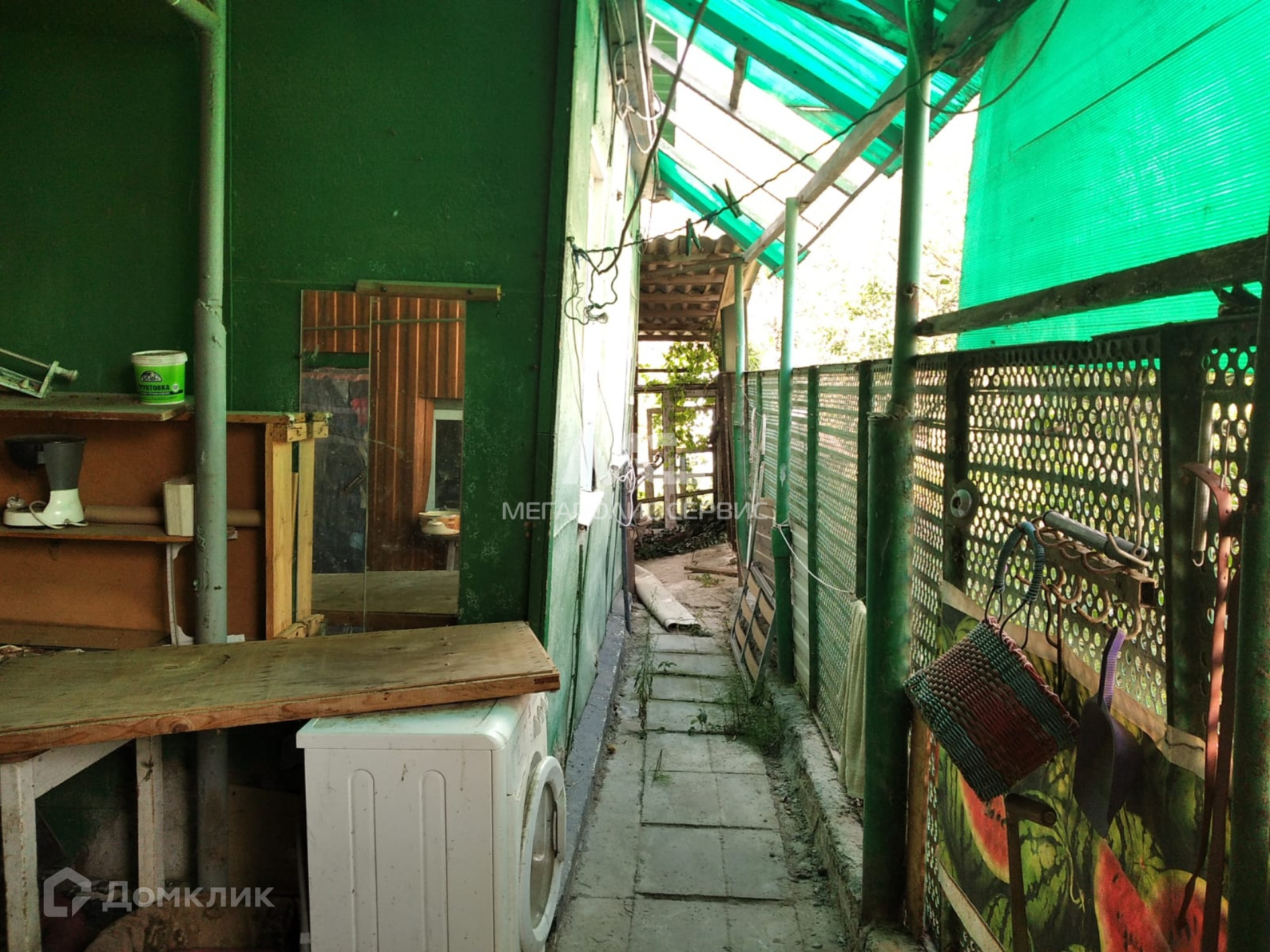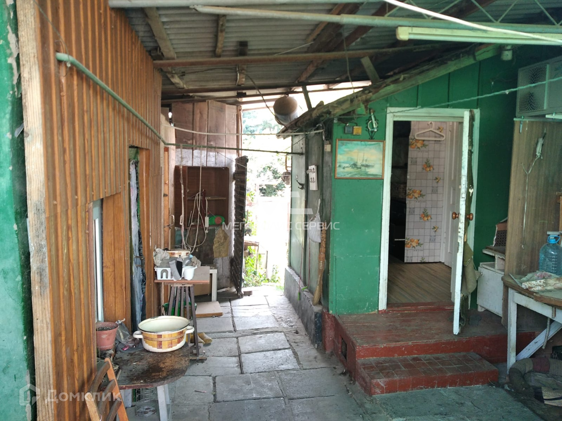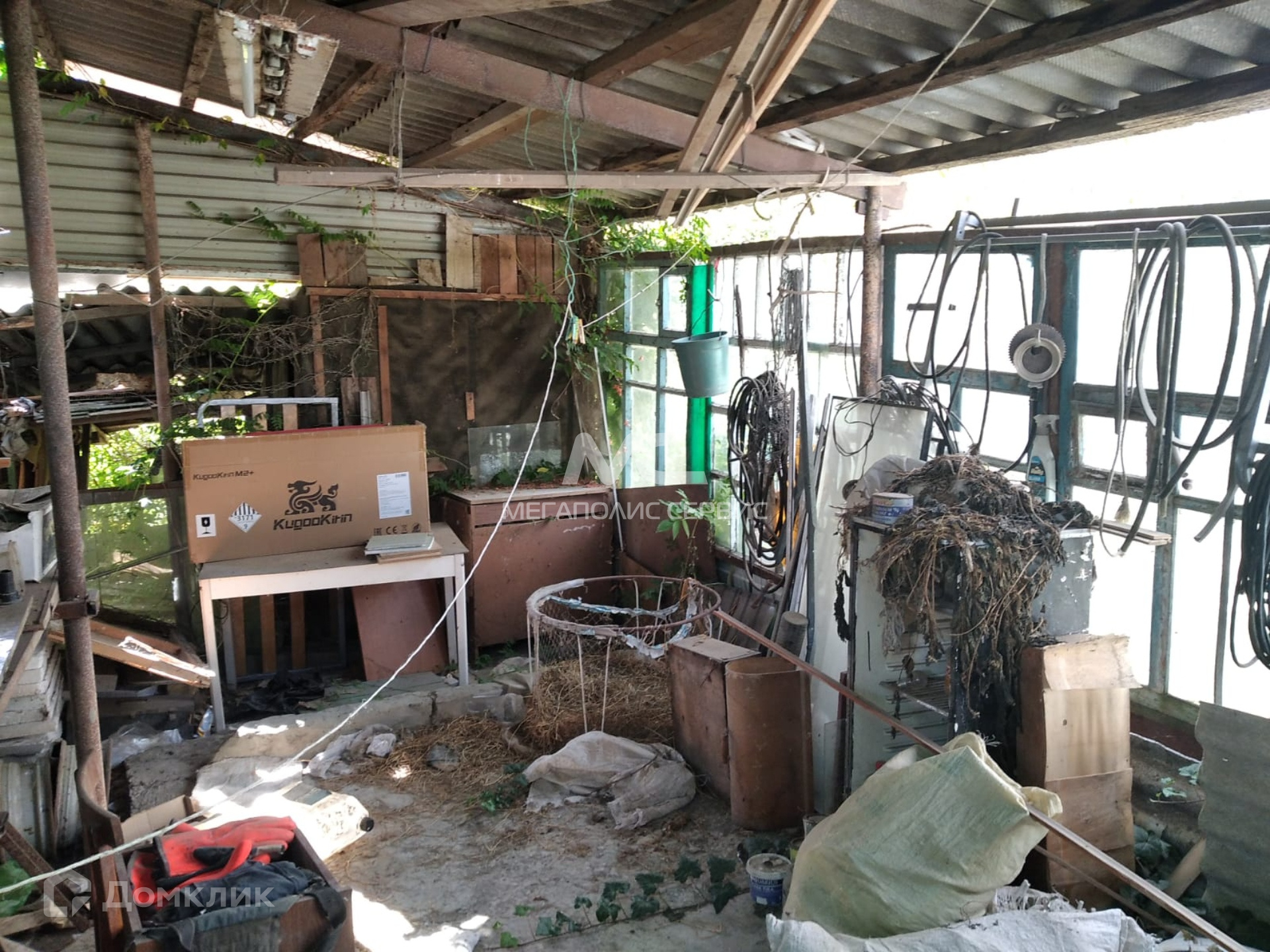Материал стен экспериментальный (требует ремонта). На участке есть баня, летняя кухня и гараж. В самом доме только одна комната.