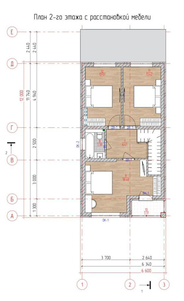 2 этаж - 3 комнаты, санузел. Из комнаты выход на балкон.