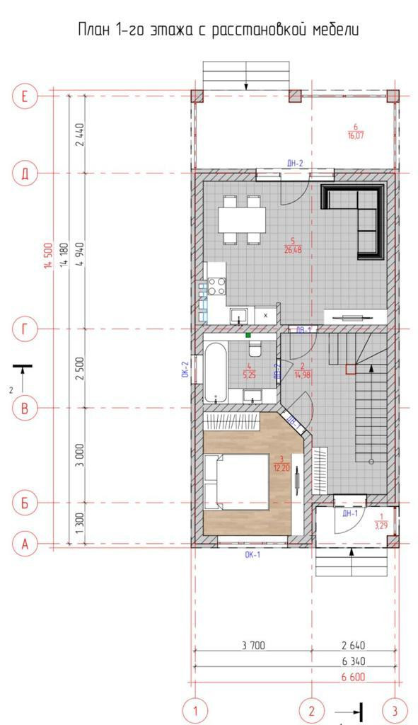 1 этаж - кухня-гостиная , комната , санузел, холл. Из кухни-гостиной выход на террасу.