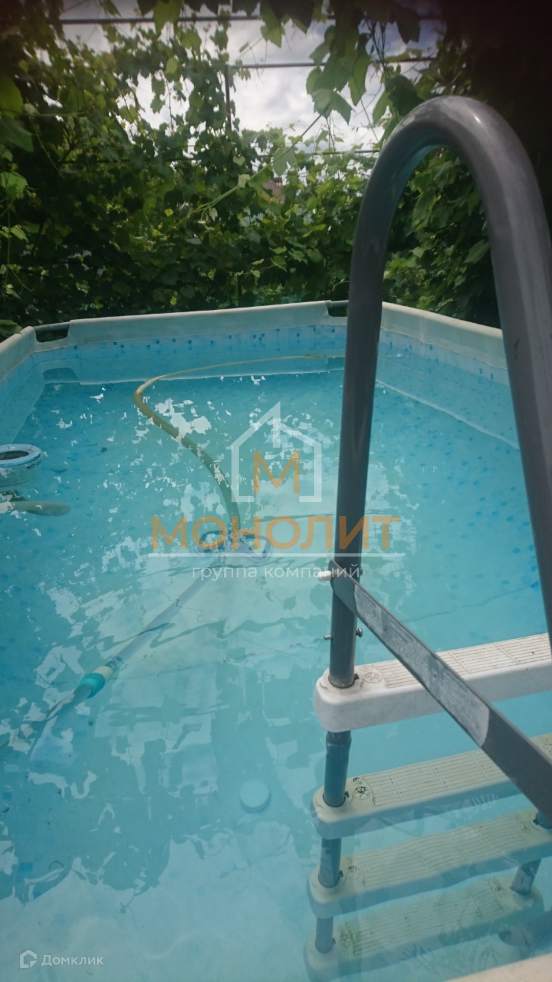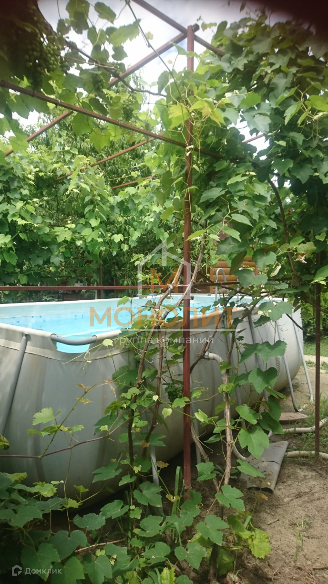Кроме того на участке расположены: качели, баня, бассейн и большая теплица.