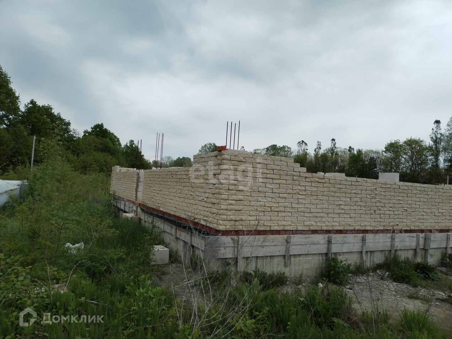 В продаже земельный участок 5 соток и недостроенный дом, расположенные в 3-х км от Горячего Ключа в сторону станицы Саратовской, КП Зелёная Усадьба. Есть готовый проект дома, разрешение на строительство получено. Фундамент размером 8 на 10 метров, с большой террасой. Выкопан в землю на глубину 1 метр, основание отсыпано щебнем на 15 см., бетонная часть армирована железной арматурой, наземная часть фундамента 65 см (армированная железной арматурой), бетонная плита высотой 20 см. Стены частично возведены: материал стен - газоблок, облицовка - кирпич. С фундаментом продаю строительные материалы , отделочный кирпич (объем достаточный на весь дом), доски для сооружения стропильной системы, кладочные блок, ЛОС (самоочищающийся септик - не требует откачки). Пробурена скважина с питьевой водой.