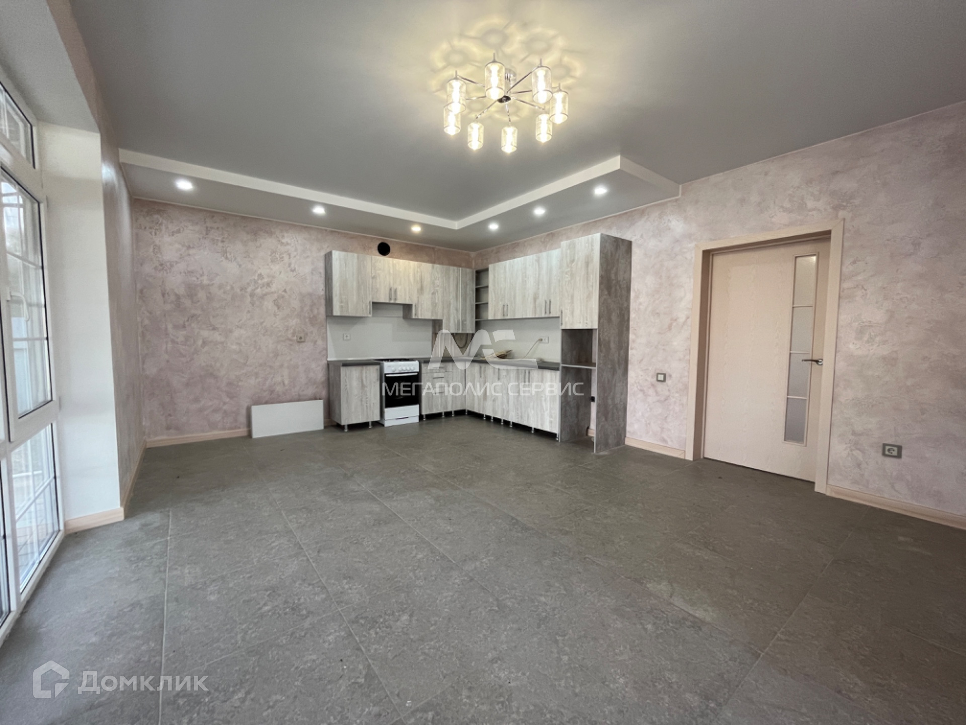Состояние - сделан евроремонт из высококачественных материалов, в комнатах и кухне гостиной выполнена дизайнерская декоративная штукатурка.