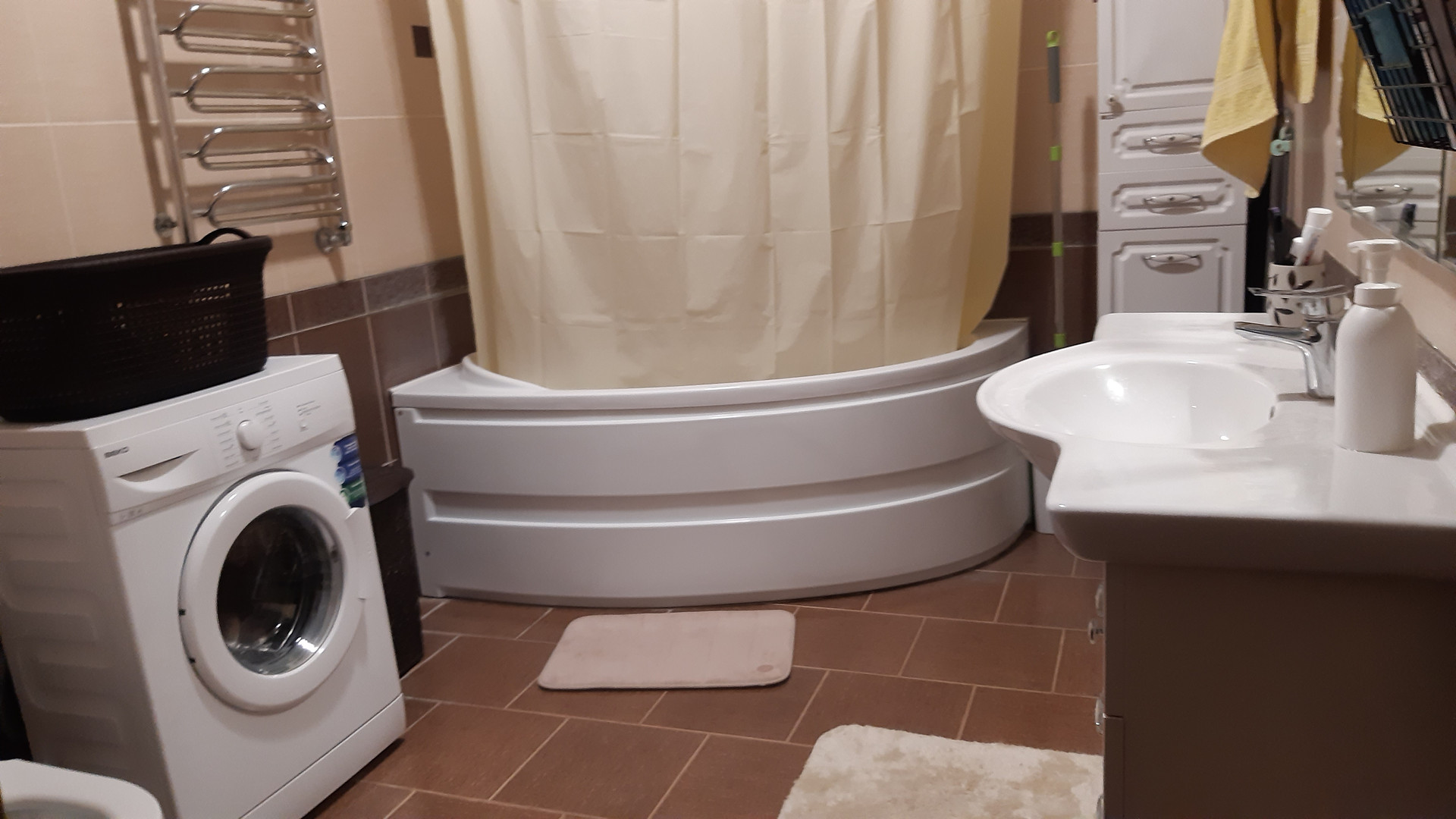 На первом этаже везде теплый пол.