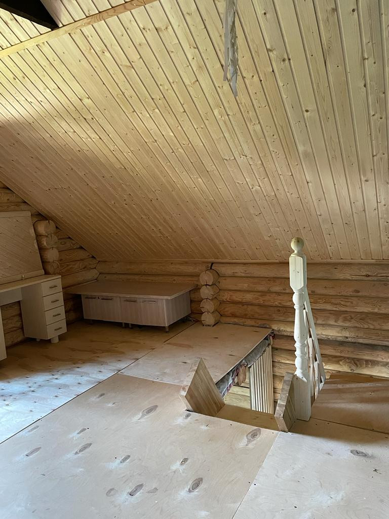 На первом этаже расположены: прихожая, гостиная, кухня, ванная +с/у. На втором этаже две комнаты по проекту, по факту - свободная планировка. Электричество - 3 фазы, 15КВт (тариф сельский, день/ночь). Вода - собственная скважина глубиной 30 метров. Вода экологически чистая и полезная для здоровья, т.к. государственная водоохранная зона. Также есть печь-камин для дополнения к конвекторному отоплению. Дом очень тёплый. Строил для себя, поэтому все этапы строительства проводились под тщательным контролем. Дом полностью обработан всеми защитными пропитками и укреплен нижней металлической сеткой от грызунов. Выполнено многослойное утепление полов и крыши.