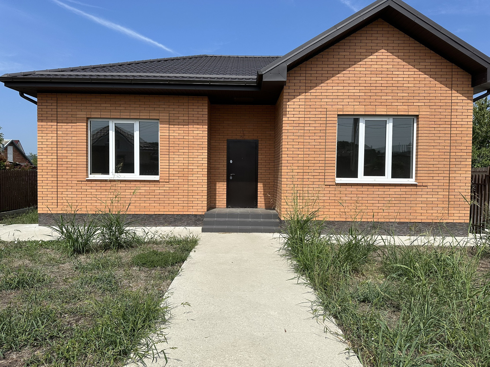 Продаем новый, кирпичный, жилой дом в городе Горячий Ключ, 2023 года постройки, 1 этажный, s-96 кв м, коридор просторный, 3 комнаты, кухня-гостиная, качественная пред чистовая отделка, автономное отопление, система теплый пол, пластиковые окна, металлическая дверь, земельный участок 3.5 сотки, забор, ворота. ДЖ-397