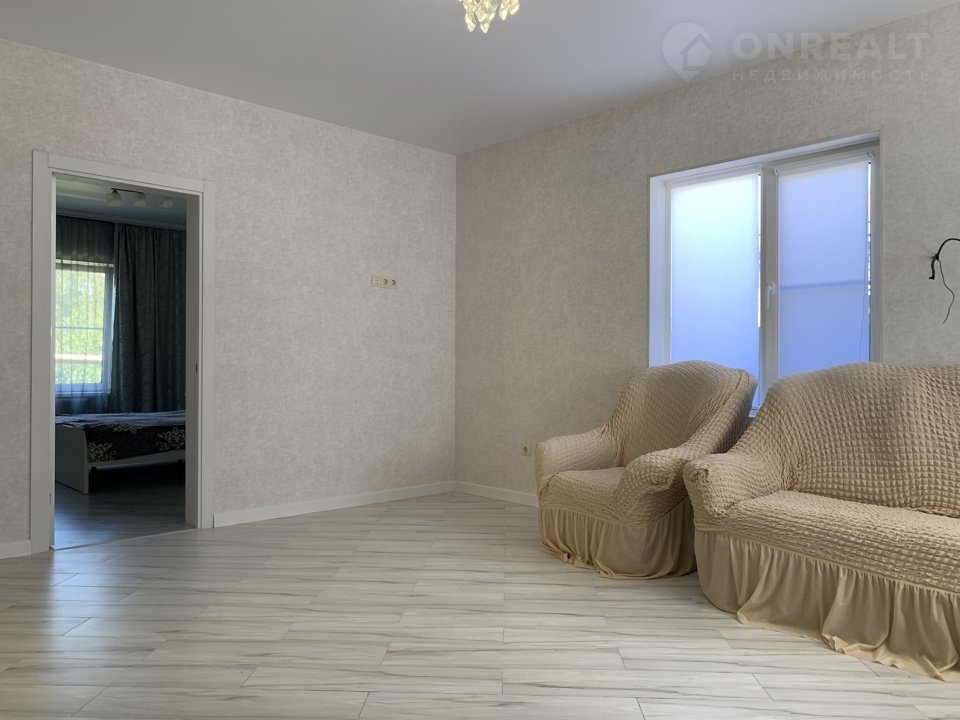Качественный жилой дом свежей постройки 2022 года. Ремонт завершен 2024 год. Планировка максимально комфортная, при входе вы заходите в просторную гостиную в которая предназначена для больших застолий с родственниками, для вечерних просмотров сериалов и любимых фильмов. С лева от входа компактная кухня полностью оборудована и готова к использованию. Здесь вы с комфортом приготовите вкусный ужин, удивите гостей и родных своим кулинарным мастерством. Ванная комната сделана просторной для возможности поставить много шкафчиков для хранения, а так же в ванной установлен выход со складной лестницей на чердак, куда вы можете спокойно сложить  елочные игрушки и вещи которыми вы пользуетесь редко. В планировке предусмотрено две отдельные комнаты достаточно просторные, светлые здесь и детская и родительская спальни, или для комфорта отдельно для каждого, а гостей можно разместить в гостиной здесь большой диван и два кресла. Окна спален смотрят на сад-огород, а значит вы хорошо выспитесь под щебетание райских пташек.