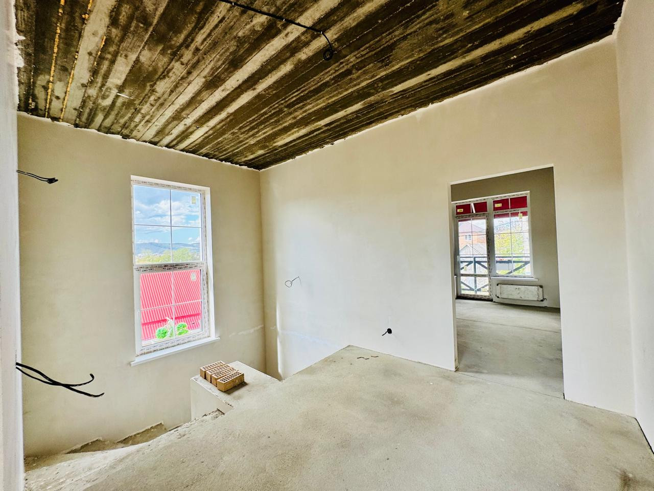 Просторная жилая площадь составляет 60 квадратный метр, а кухня-гостиная  23 квадратных метра с выходом на террасу, что позволяет комфортно разместиться и готовить пищу. В дома выполнен качественная пред чистовая отделка.