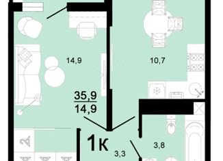 1-ком. квартира на продажу, 35.9 м2, улица Ярославского, 111