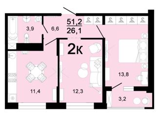 Общая площадь: 51.2 м2