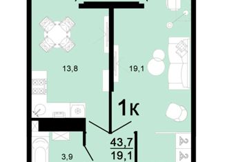 Общая площадь: 43.7 м2