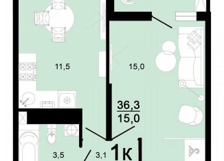 Общая площадь: 36.3 м2