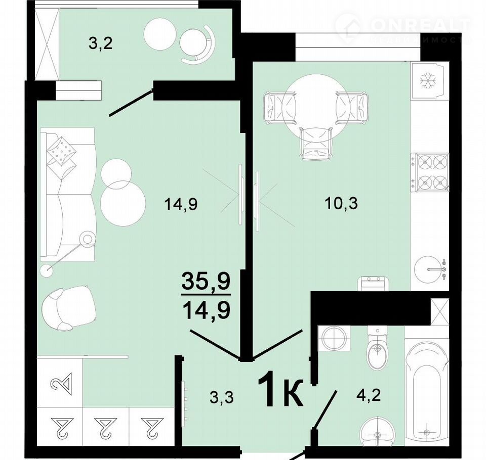 Общая площадь 35.9 м2