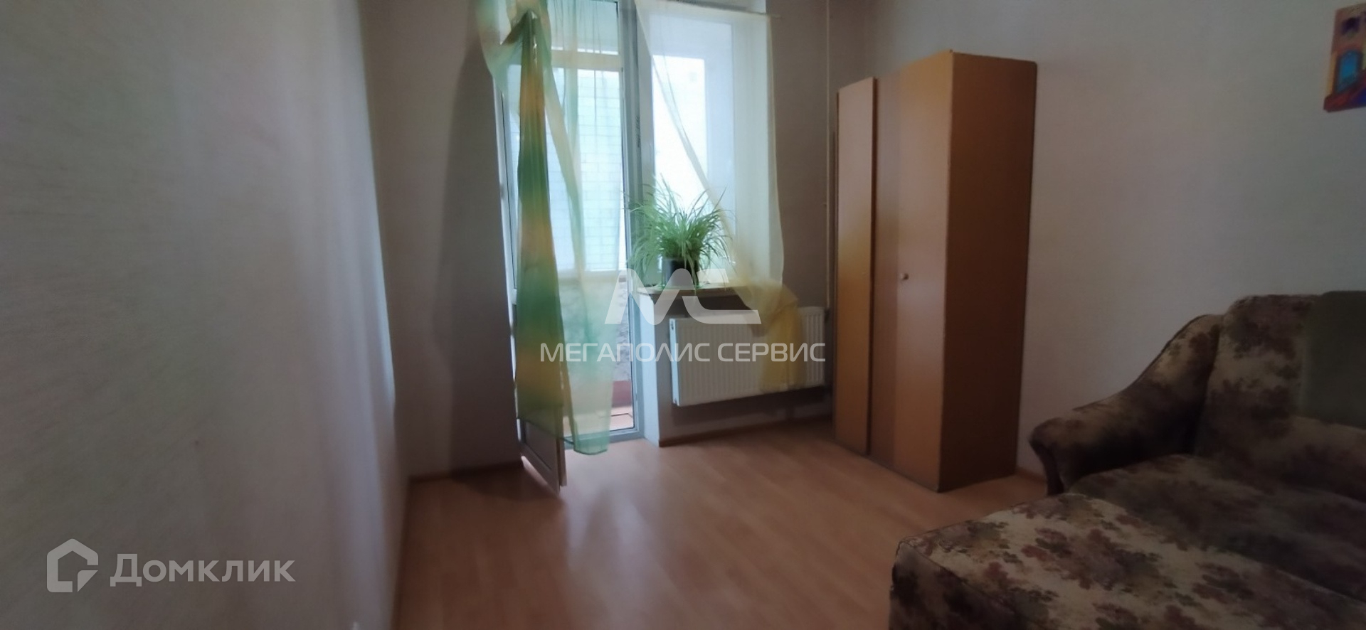 Балкон застекленный, выход из комнаты.