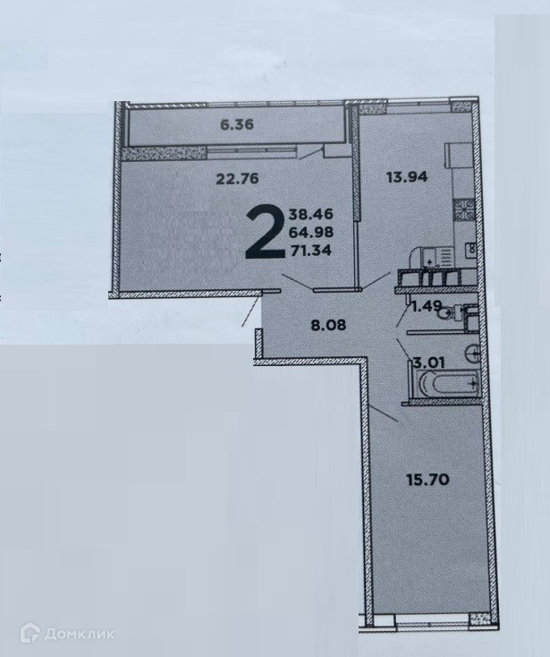 Жилая площадь 38 м2