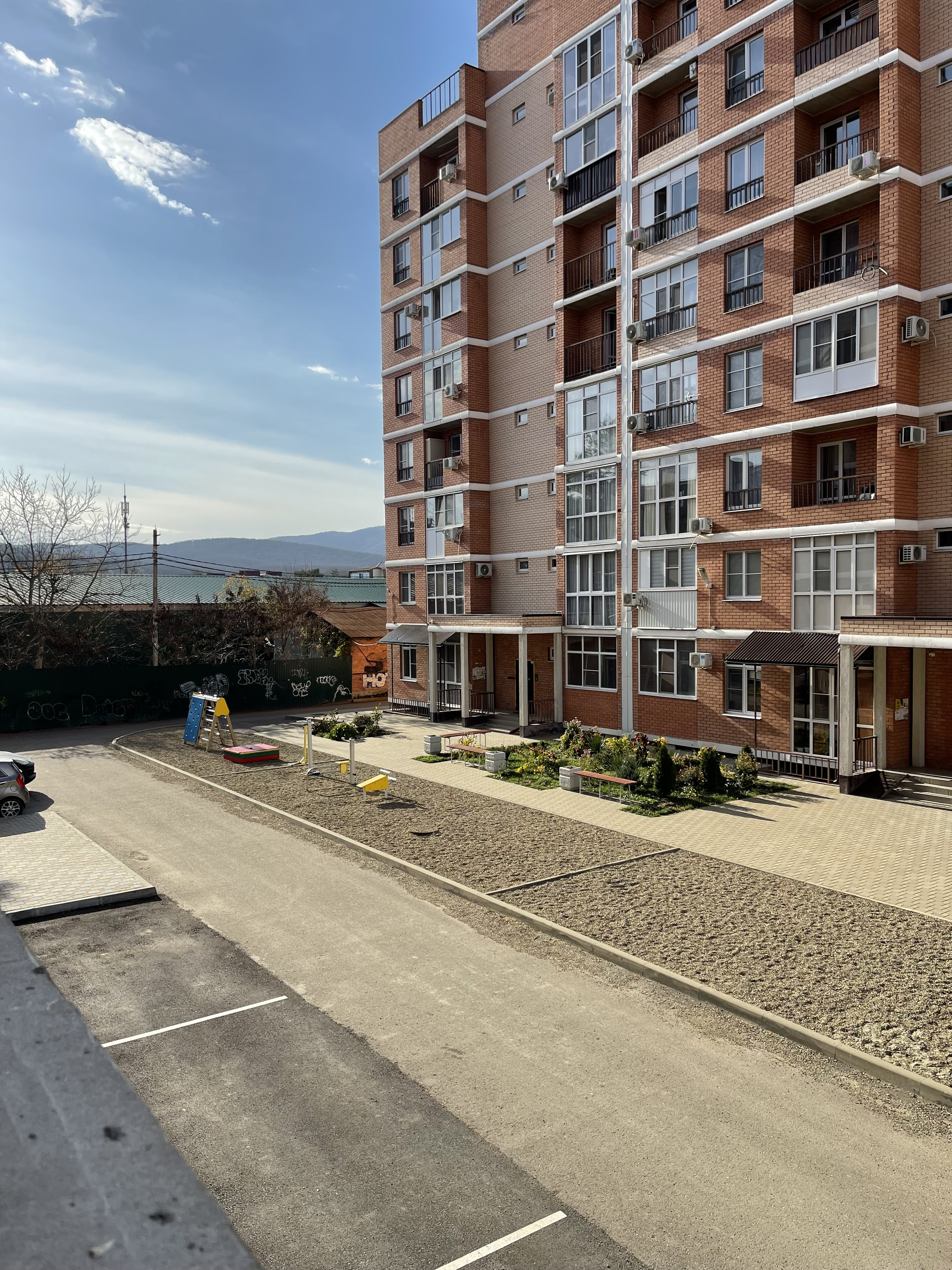 Во дворе дома расположена детская площадка, стоянка для автомобиля.