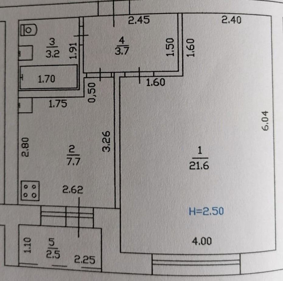 Площадь кухни 7.7 м2